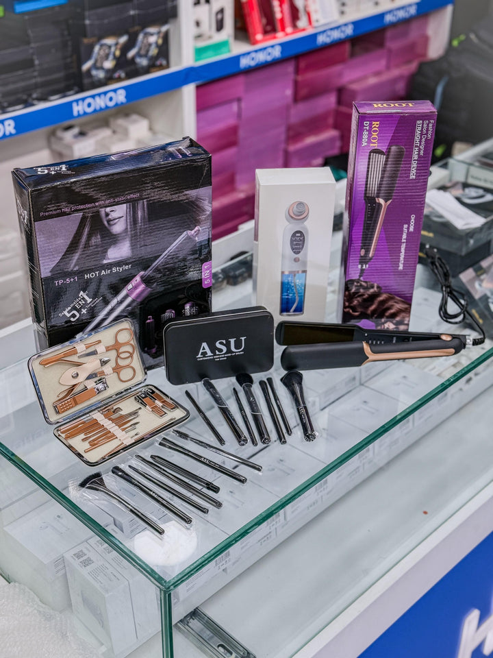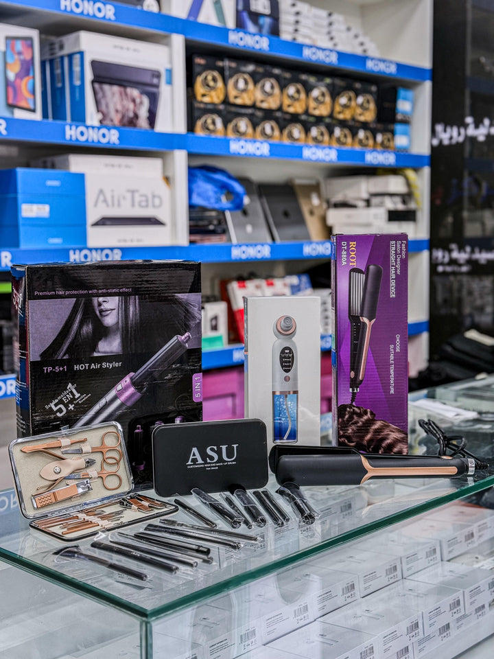 باكدج سيدتي (سيشوار + فرش ميكب + مكواة شعر + طقم بادي كير + جهاز ازالة دهون البشره )