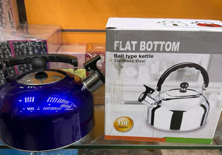 إبريق شاي مصنوع من الفولاذ المقاوم للصدأ (Stainless Steel)، يحمل تصميمًا بقاعدة مسطحة (Flat Bottom) مما يجعله مناسبًا للاستخدام على أسطح الطهي المختلفة.