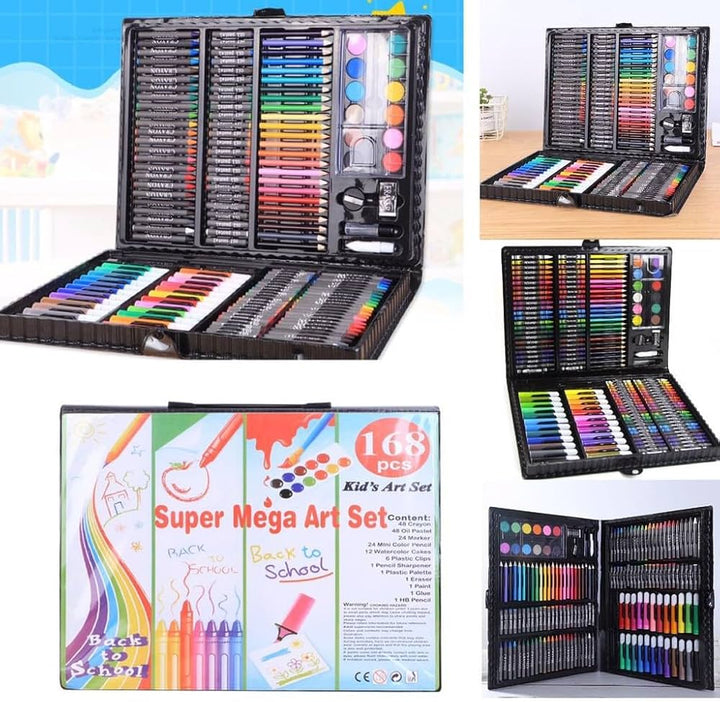 مجموعة رسم وألوان شاملة تحتوي على أدوات فنية متنوعة تناسب الأطفال والهواة وحتى الفنانين.